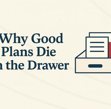 Planning feels like an event, while implementation is a grind. Once the retreat ends, momentum fades. People go back to crowded calendars and crisis mode. Strategy slips quietly into the drawer.